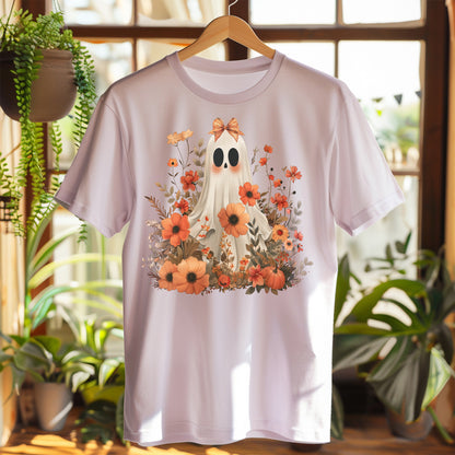 Autumn Ghost Floral Shirt Cute Fall Halloween Tee